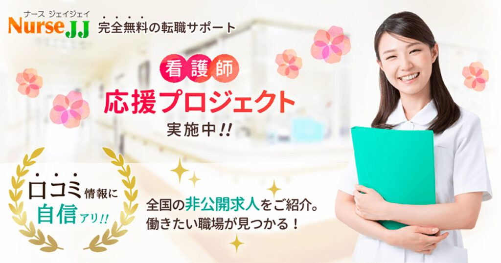 ナースJJは、「正看護師・准看護師・助産師」の求人に特化した転職エージェントです。